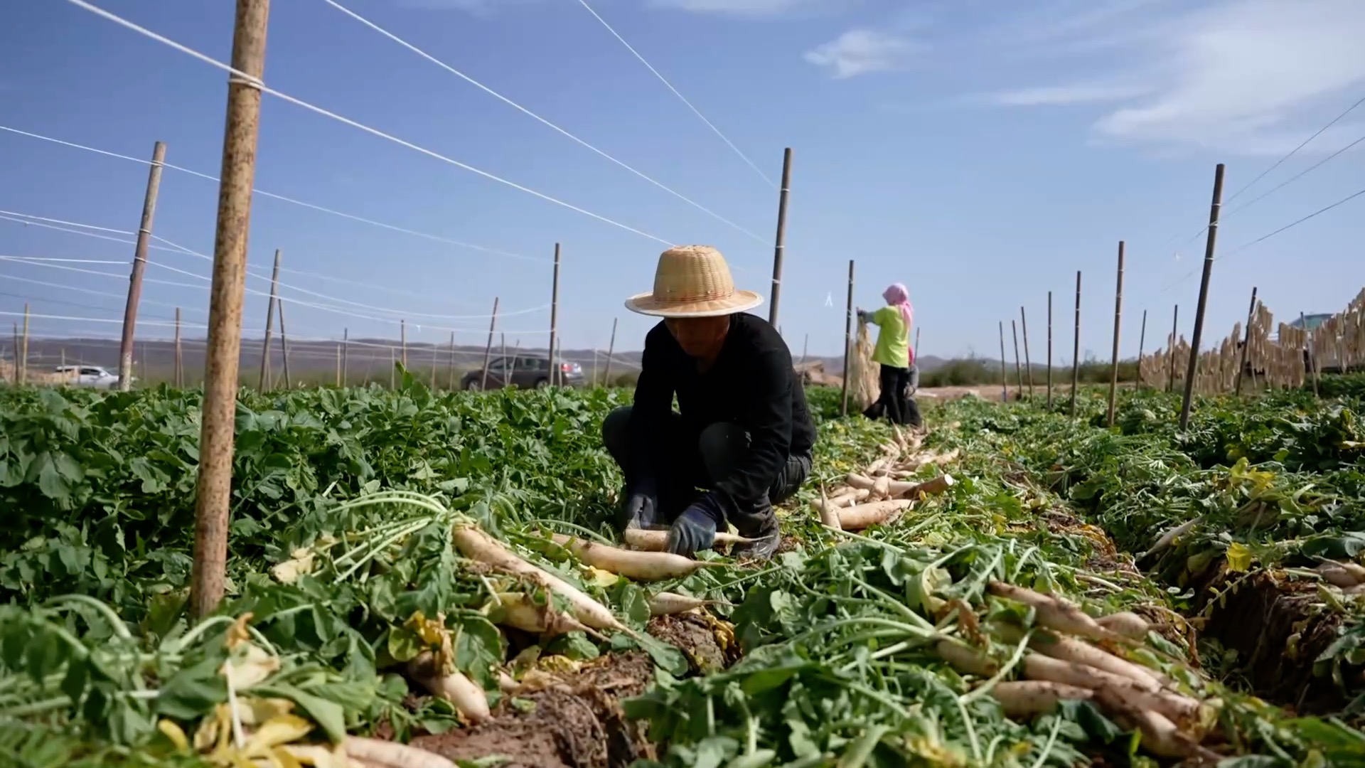 在宁夏吴忠市红寺堡区大河乡平岭子村,1500亩长美萝卜迎来丰收季。
