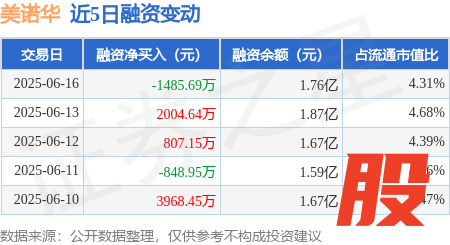 本站消息,6月16日,美诺华(603538)融资买入5747.39万元,融资偿还7233.08万元峪科配资,融资净卖出1485.69万元,融资余额1.76亿元,近20个交易日中有11个交易日出现融资净买入。